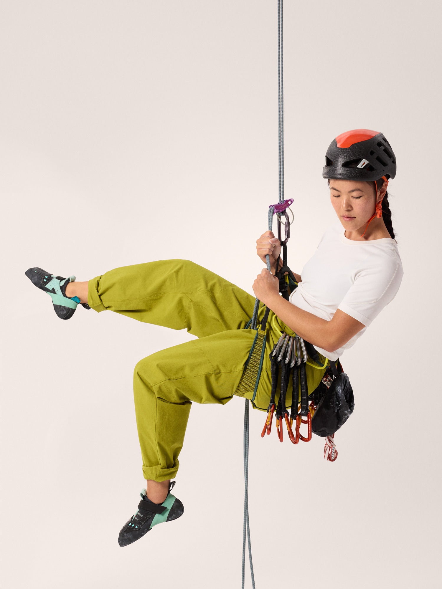 The wide-leg Clarkia climbing pant – unrestricted freedom and flow for boulder, crag, and gym. Articulated patterning, a gusseted crotch, the wide leg, and the fabric’s stretch all work together to remove restriction. The heavyweight material blends cotton’s softness with nylon’s durability, the waistband rides comfortably under a harness, four accessible pockets provide storage, and a PFAS-free water-repellent treatment adds light weather protection.